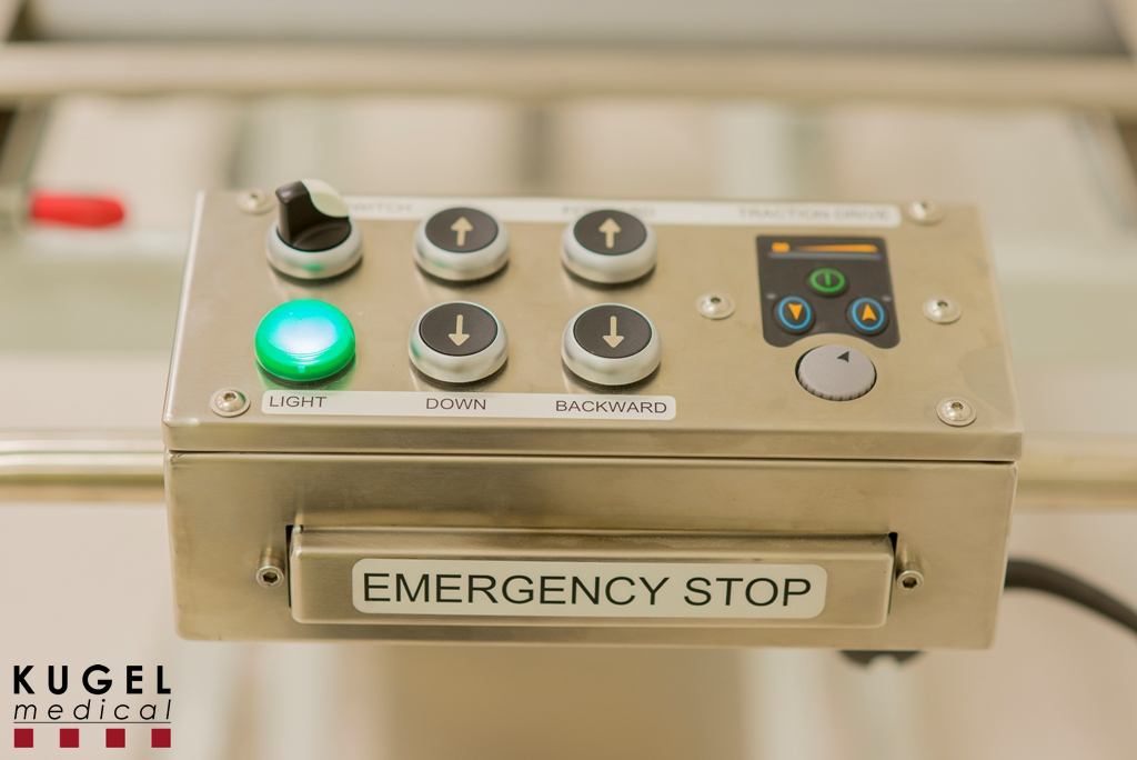 Der elektrische Fahrantrieb beinhaltet zudem einen Sicherheitsschalter am Bedienpanel mit automatischer STOPP-Funktion, um ein Einquetschen des Bedieners zu verhindern.